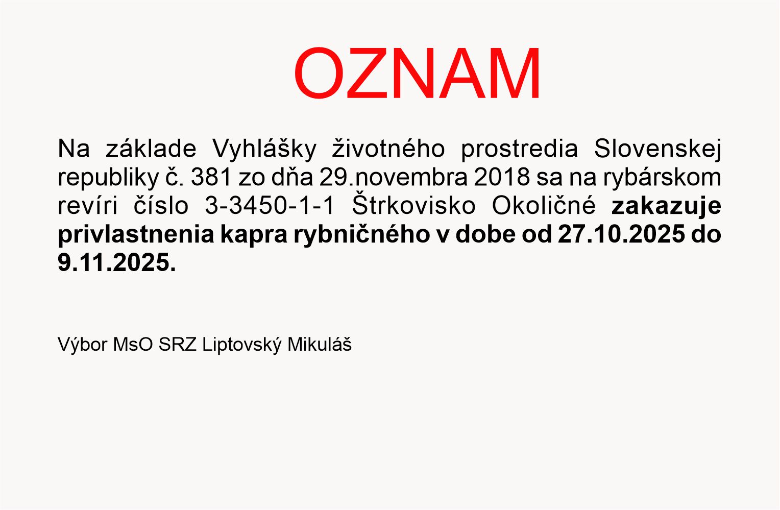Platná výnimka lovnej miery pre MsO SRZ LM