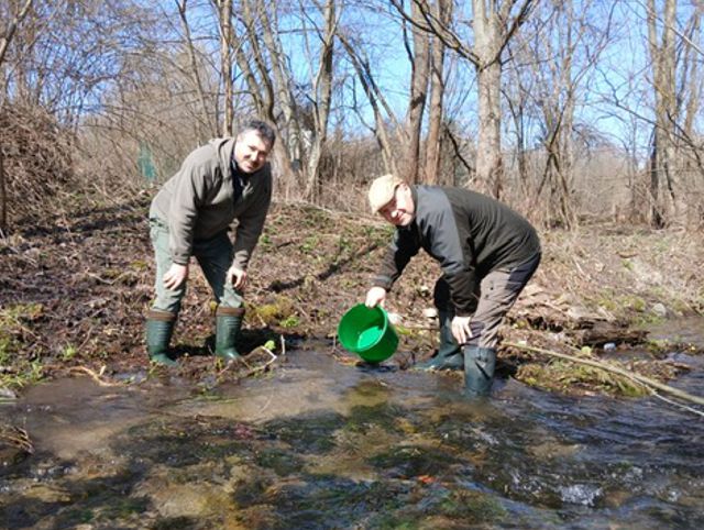 Zarybnenie ikrou pstruha potočného na potoku Mošnica a na Suchom potoku (Kvačianka) dňa 3.4.2026