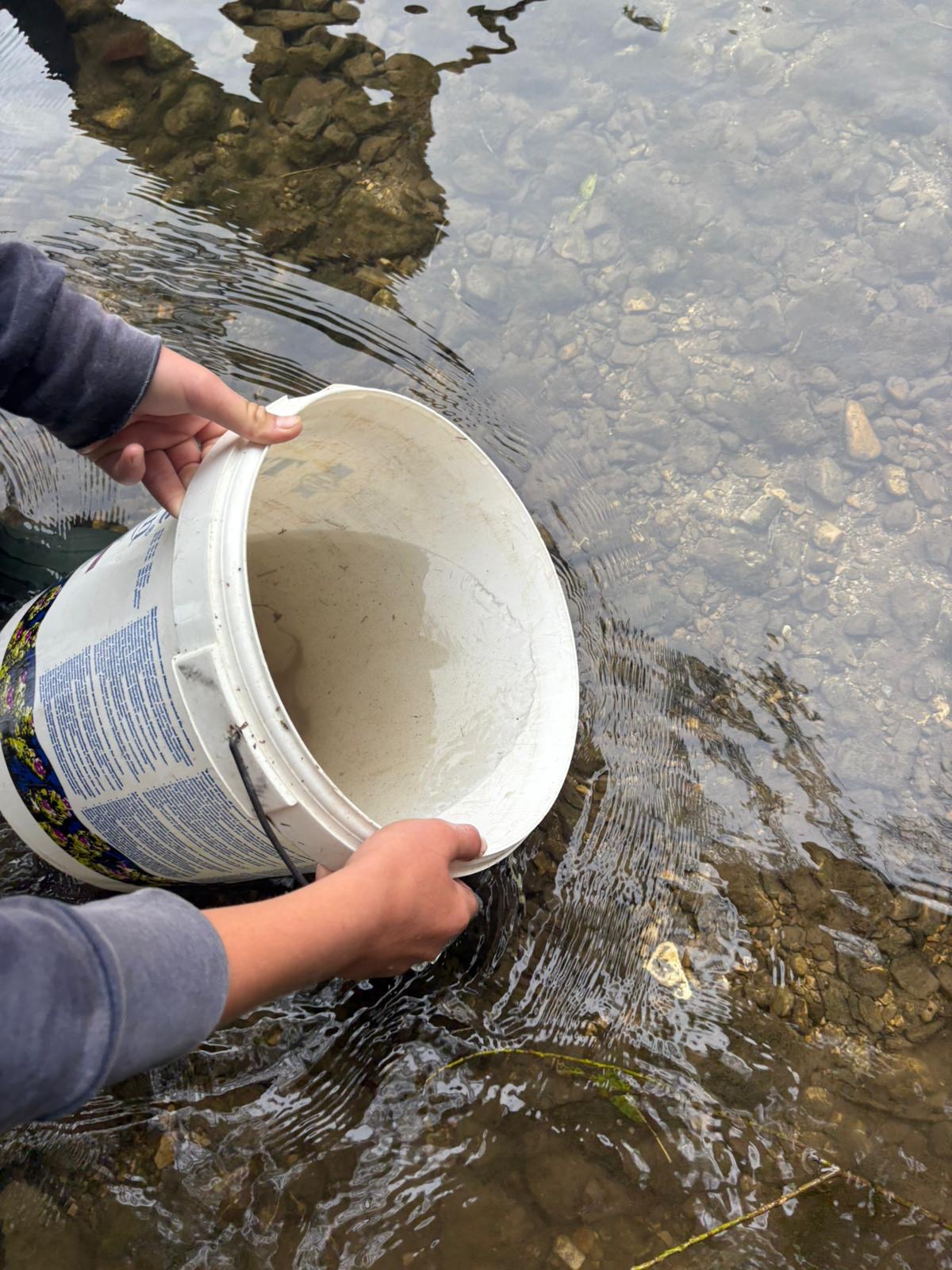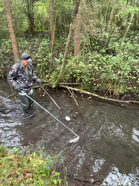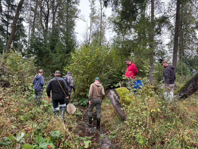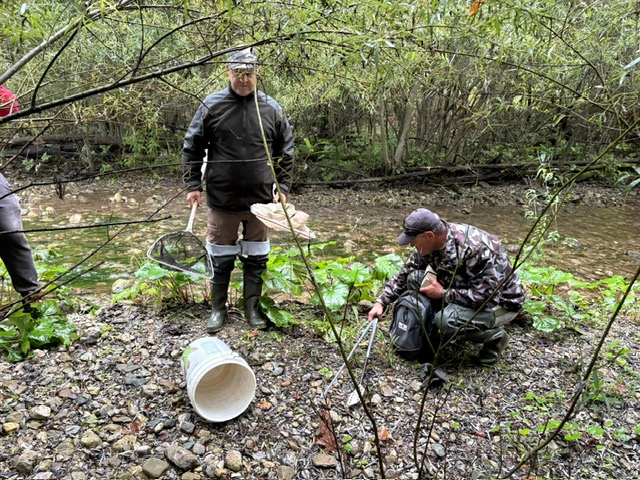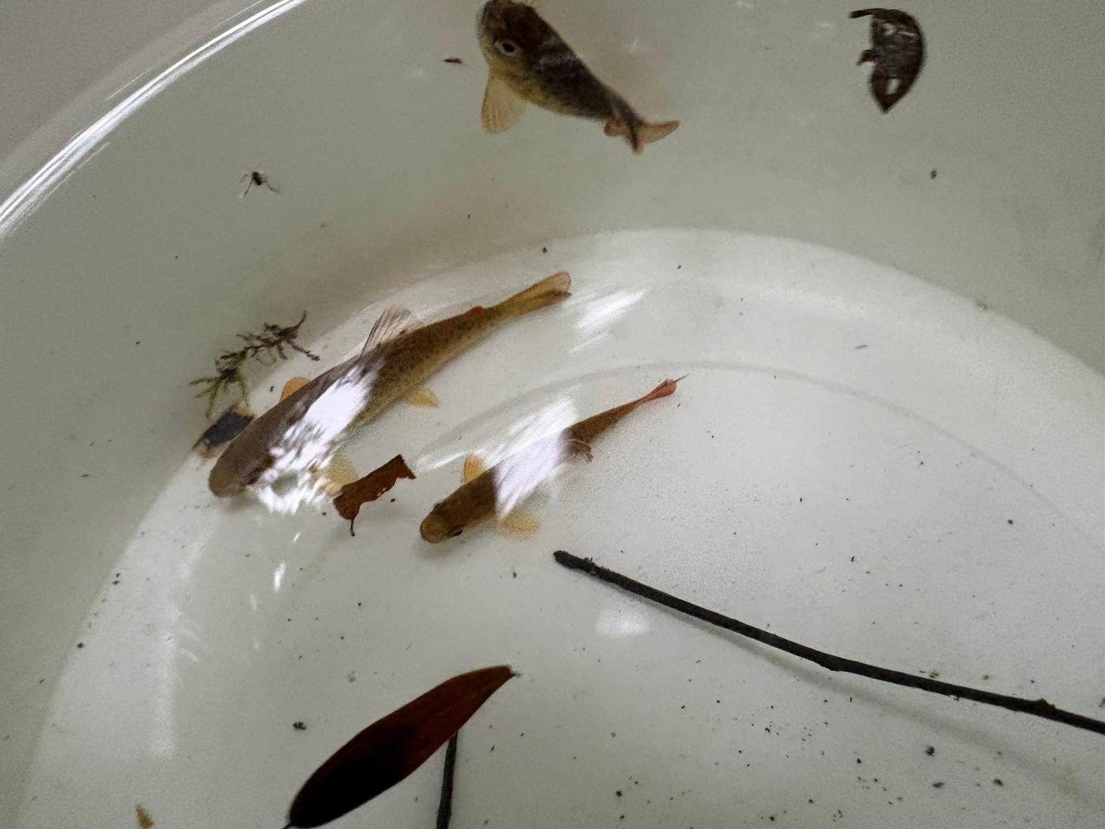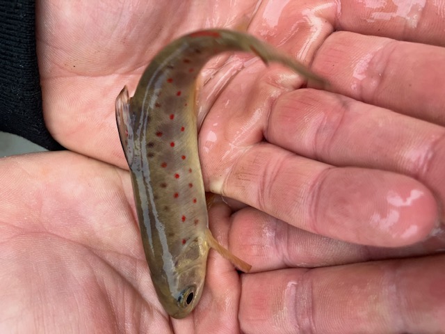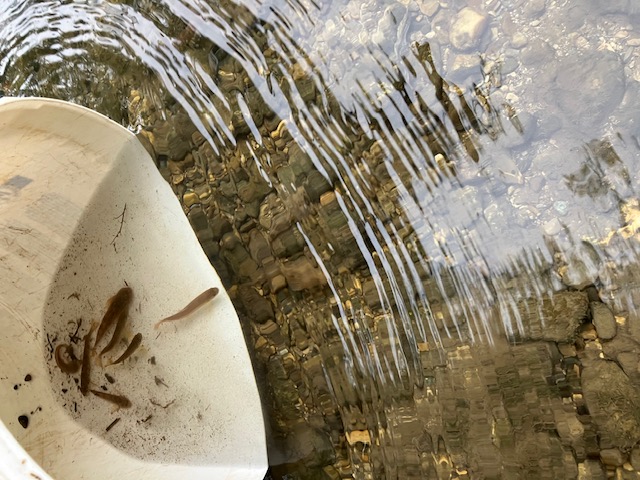 Zlovenie pstruhov z prítoku Suchého potoka, zarybnené ako ikry v januári. Zlovené ryby boli vypustené do Kvačianky.